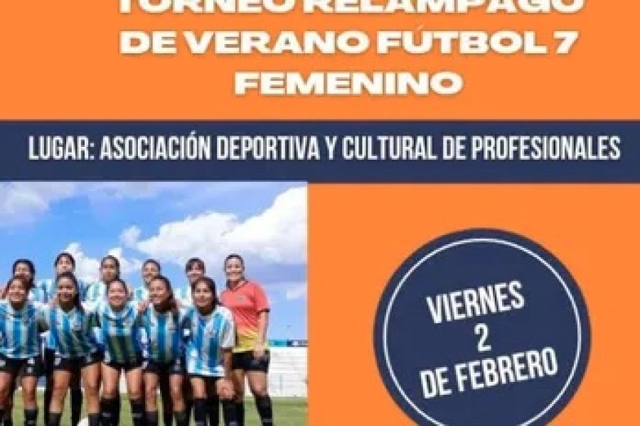 Hasta el 27 de enero estará abierta la inscripción, libre y gratuita, al Torneo relámpago de Fútbol 7 Femenino organizado por la Secretaría de Deportes de la Provincia, en canchas de la Asociación de Profesionales, ubicadas en Alto Comedero.