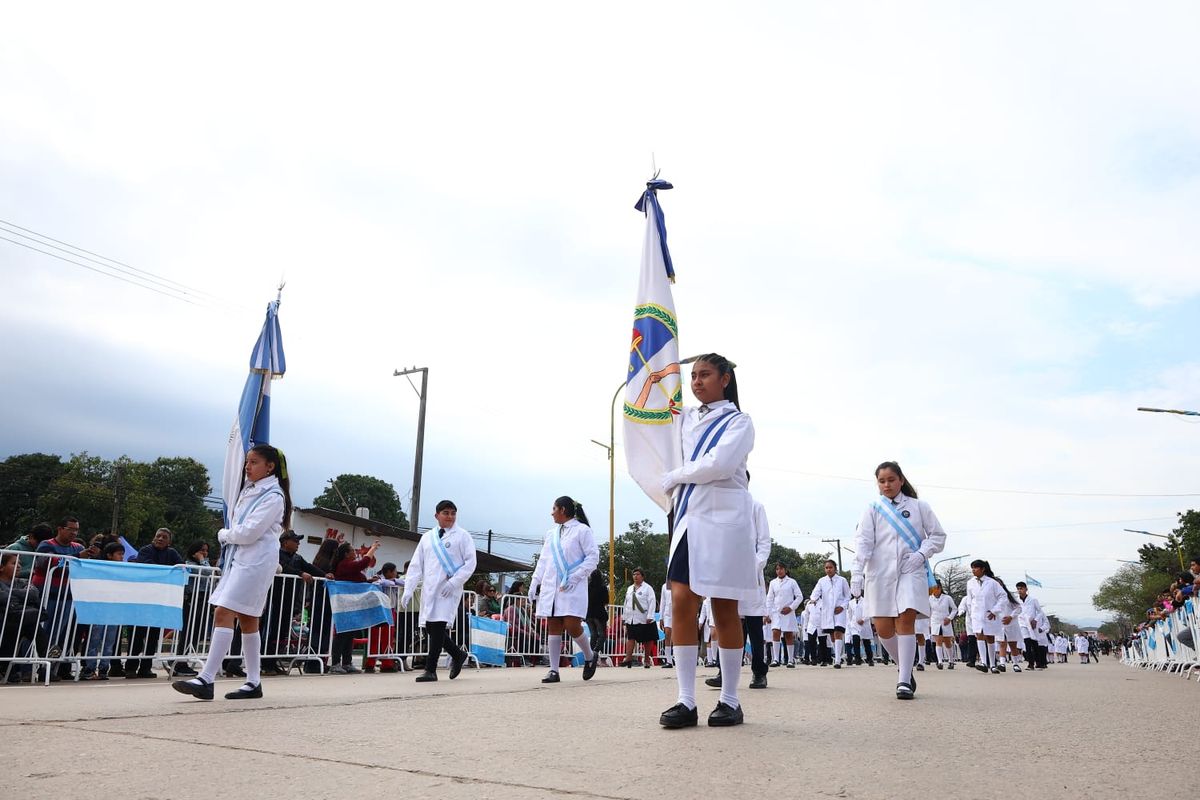 En tanto, el acto principal, desarrollado en horas de la tarde, congregó a autoridades provinciales y municipales, incluyendo al intendente Oscar Jayat, la ministra de Educación, Miriam Serrano, y el secretario de Seguridad, Juan Manuel Pulleiro, además de una amplia representación de legisladores, fuerzas de seguridad, la comunidad educativa y agrupaciones gauchas.