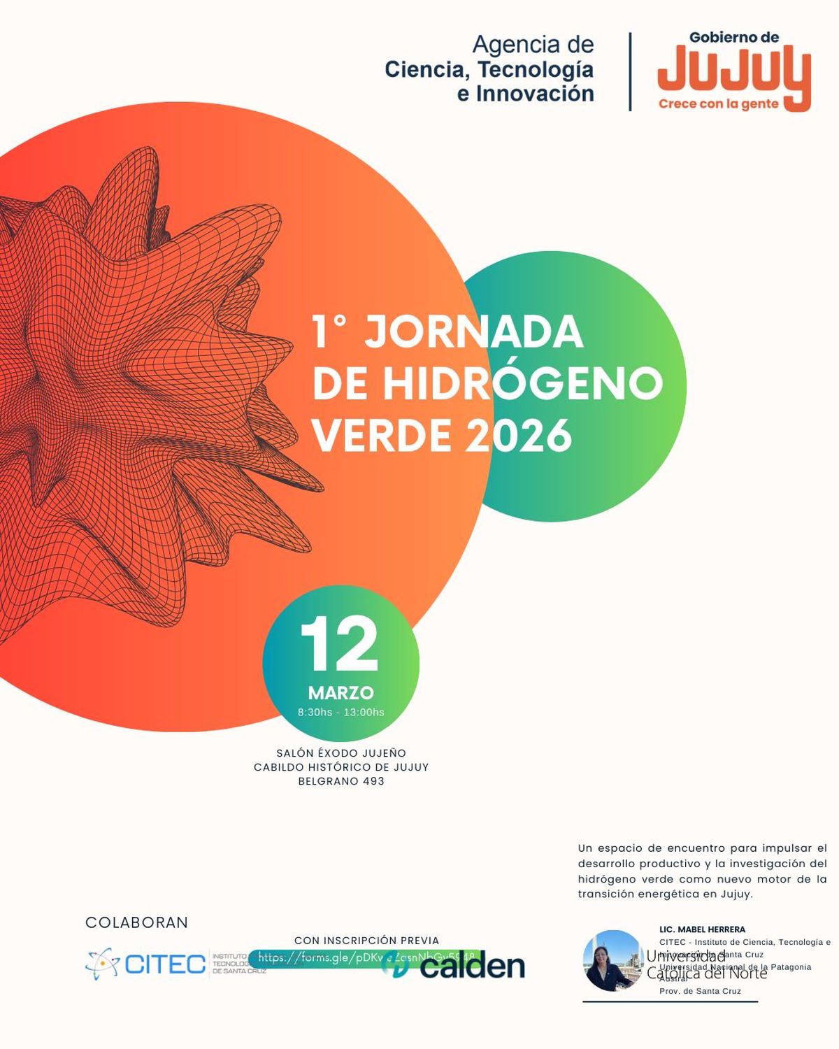 En instalaciones del Salón Éxodo Jujeño del Cabildo Histórico de Jujuy, el jueves 12 de marzo próximo, se cumplirá la Primera Jornada de Hidrógeno Verde 2026 en nuestra provincia, la que apunta al desarrollo y producción de esa emergente fuente energética.