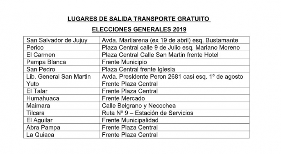 En este sentido, el Gobierno de la provincia, garantiza la gratuidad del servicio de transporte, tanto la ida como la vuelta para la emisión del sufragio, previa acreditación mediante el Documento Nacional de Identidad, el cual acredite la locación donde debe cumplir con su obligación cívica.