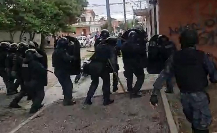 “Estamos cumpliendo una orden de la justicia, la empresa tenía que comenzar hoy y nosotros vinimos a garantizar el cuidado de los materiales, el arribo de los camiones”, señaló el secretario de Seguridad Pública de la provincia, Diego Suarez.
