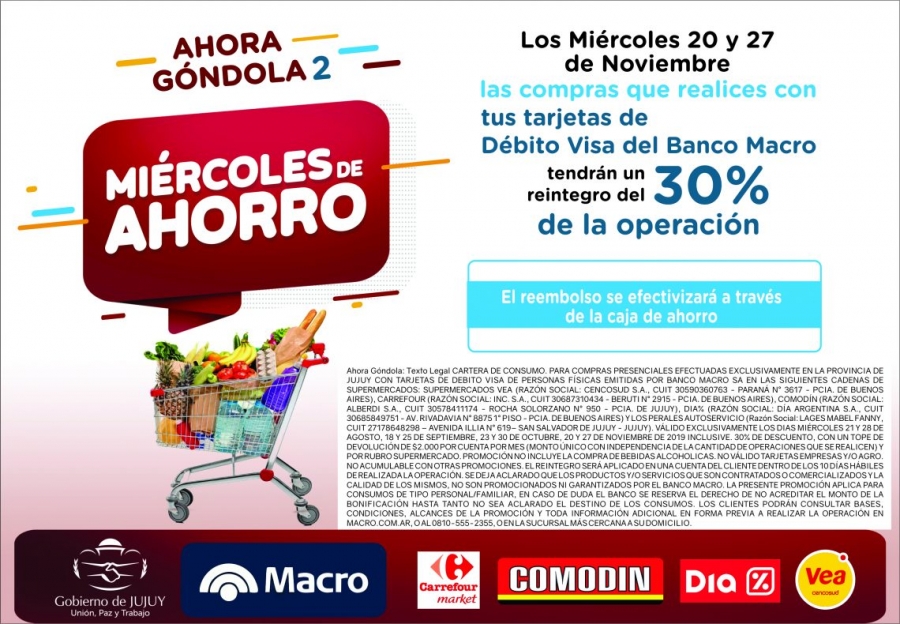 La iniciativa que es impulsada por el Gobierno de la Provincia, de manera conjunta con los supermercadistas y el banco Macro, contempla la devolución de un porcentaje de la compra de mercadería en las firmas adheridas, para quienes abonen con tarjeta de débito del banco Macro.
