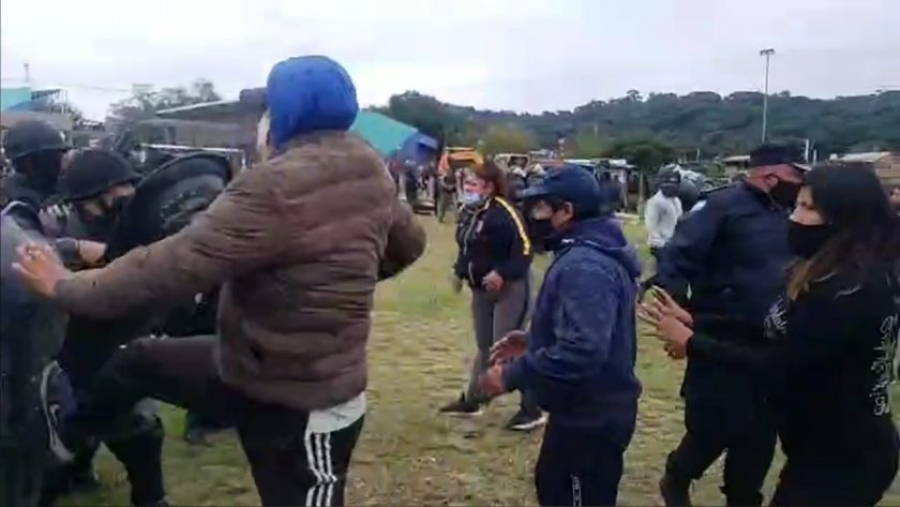 Ante las supuestas arengas, personas a identificar habrían empezado a arrojar piedras que impactaron en el camión causando daños en su estructura y lesionando al personal policial que se encontraba en los lados del rodado.