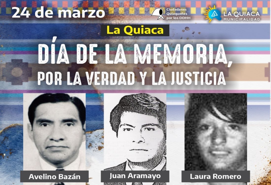 “Nos acompañarán familiares de Juan Aramayo y de Avelino Bazán. También haremos un especial reconocimiento de Laura Romero, que es una quiaqueña que fue secuestrada en Buenos Aires en abril de 1976 y cuyo cuerpo luego apareció en las costas uruguayas, víctima de los vuelos de la muerte”, declaró Silvia Martínez, referente quiaqueña de derechos humanos.