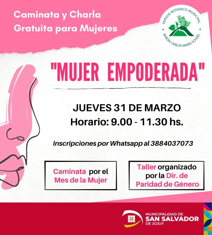 Esta actividad consistirá en una caminata temática junto a un taller dictado por personal de la Dirección de Paridad de Género y está dirigida a todas las mujeres, mayores de 18 años, que le interese la temática y quiera experimentar esta combinación de naturaleza+mujer empoderada.
