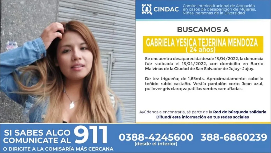 Policía de la Provincia solicita a la comunidad que ante cualquier dato que puedan aportar comunicarse a la línea 911 o 388-4245600/ 388-6860239 o dirigirse a la comisaría más cercana.