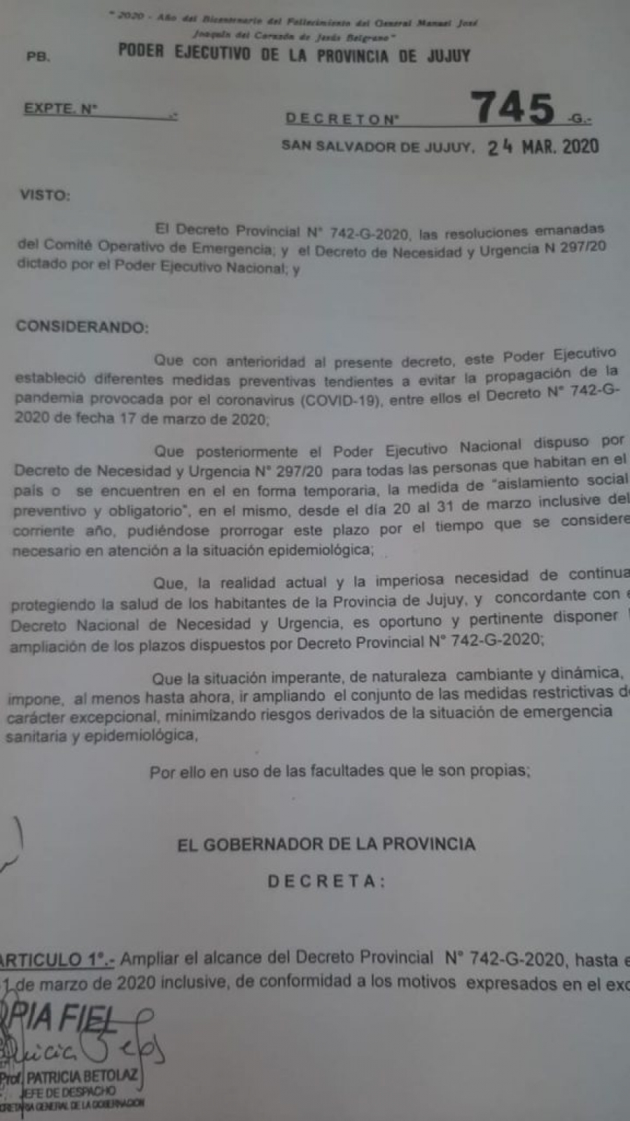 Finalmente, se recuerda que los artículos contemplados dentro del Decreto Provincial N° 742-G-2020 establecen la continuidad de tareas habituales de trabajo o análogas desde el respectivo domicilio o lugar de aislamiento.