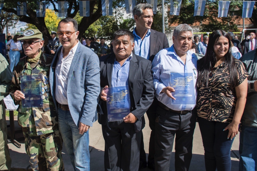 En tanto, el Presidente del Centro de Veteranos de Guerra de Malvinas, Paulino Guanuco, señaló: “Acá está sintetizado la historia del soldado argentino, más que nada los que vivimos en San Salvador, esto se trabajó mediante ordenanza, se llevó la inquietud al Concejo Deliberante y de ahí se comenzó a hacer un trabajo muy importante para llegar a la creación de la placa con el código QR que indica que día llegó el soldado a Malvinas, que hizo, como volvió en avión o en barco, relata toda una historia particular, porque no todos estuvimos en el mismo lugar, algunos como en mí caso a 120 km. en Bahía Fox , otros alrededor de Puerto Argentino ,entonces allá nosotros no nos conocíamos, fue acá cuando nos organizamos y comenzamos a conocernos”, finalizó.