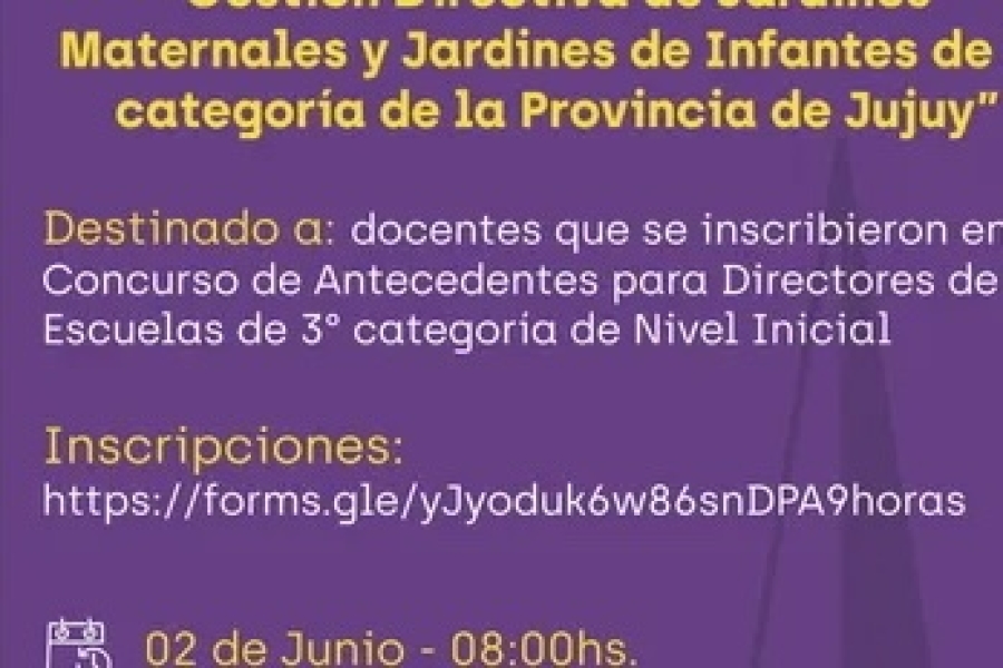 Se informa a la comunidad docente, que sólo podrán participar del evento los docentes que se inscribieron en el Concurso de Antecedentes para directores de Escuelas de 3° categoría de Nivel Inicial Resolución N° 4946–E-23, en Junta Provincial de Calificación Docente.
