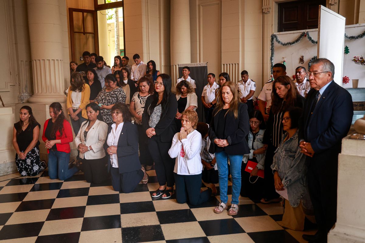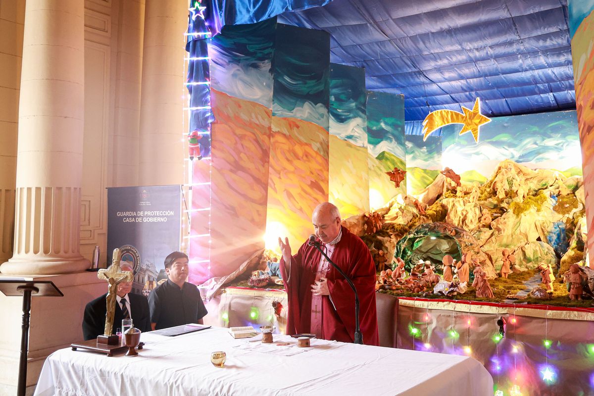 El marco de las fiestas de fin de año, se realizó en el ingreso a la casa de gobierno la tradicional misa religiosa en honor a la fiesta navideña, organizado por el personal de la institución.