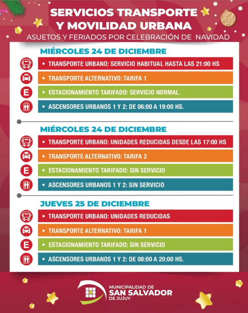 - Transporte Urbano: servicio habitual hasta las 21:00 hs.