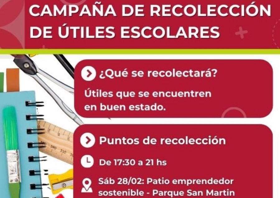 Desde el municipio invitan a la comunidad a revisar en casa y acercar aquellos útiles que aún puedan tener una nueva oportunidad. Cada cuaderno, lápiz o carpeta puede marcar una diferencia en el comienzo de clases de muchos estudiantes.