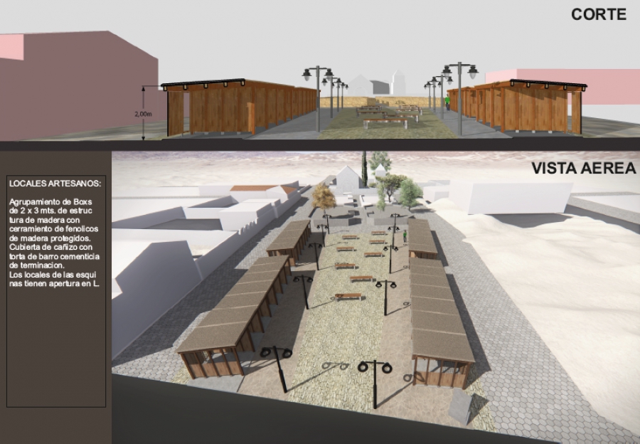 La obra, a cargo de la Secretaría de Infraestructura, tendrá un periodo de ejecución de aproximadamente 30 días tras su inicio. Comprende la construcción de boxs de 2x3mts ubicados de forma paralela, en dos grupos de 15 cada uno, que se emplazarán en el sector previo a la plaza principal, y serán montados con estructura de madera y techo de cañizo con torta de barro, a lo que se sumará instalación eléctrica, alumbrado público y bancos urbanos.