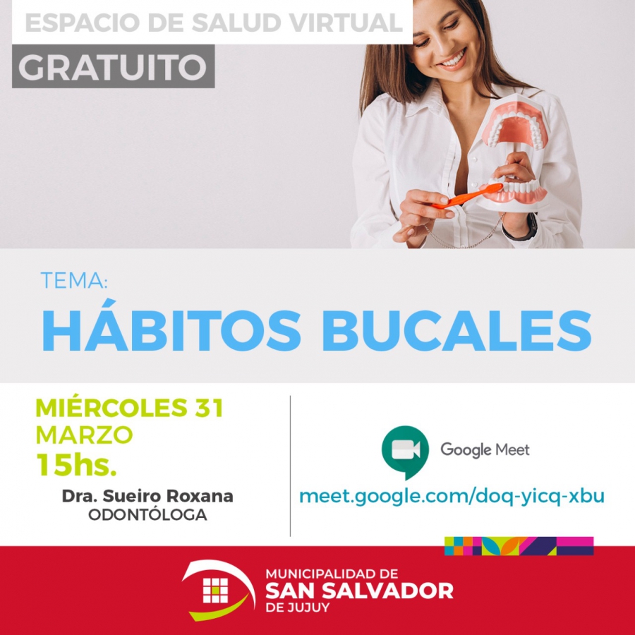 El encuentro, denominado “Hábitos Saludables” estará a cargo de la odontóloga Roxana Sueiro y será transmitido a hs 15 mediante la aplicación meet.