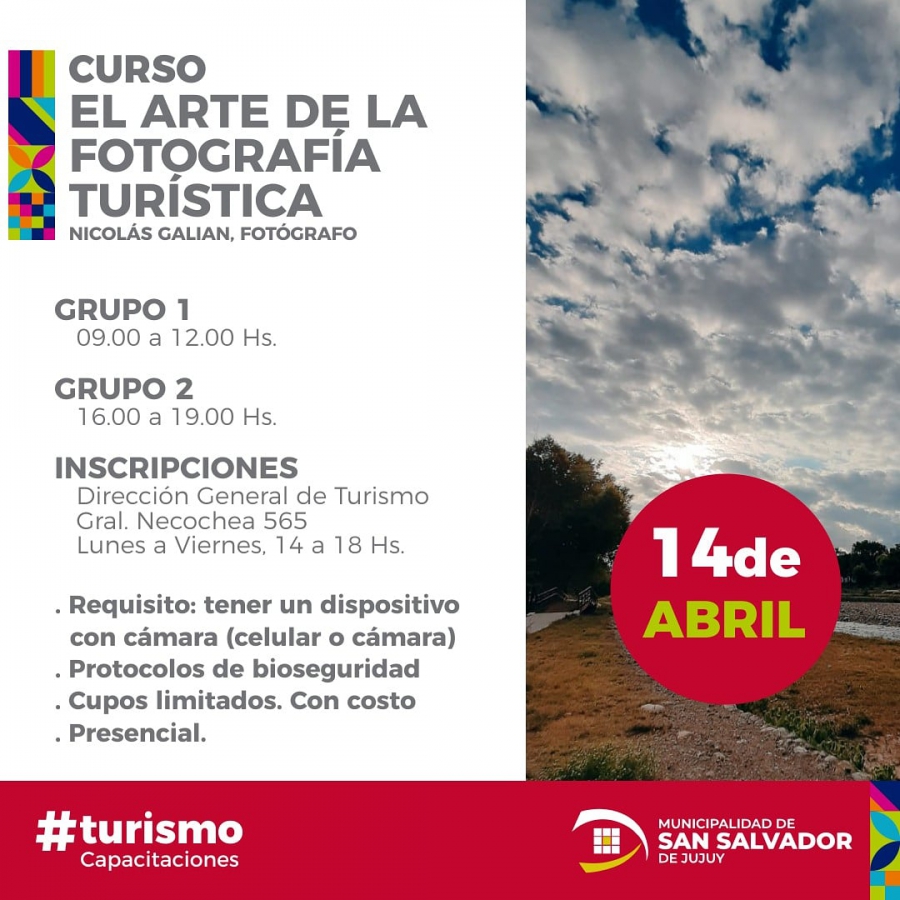 El curso es teórico-práctico y se dictará en forma presencial, a partir del 14 de abril, por el fotógrafo Nicolás Galián. Al término del mismo se entregará el certificado correspondiente.
