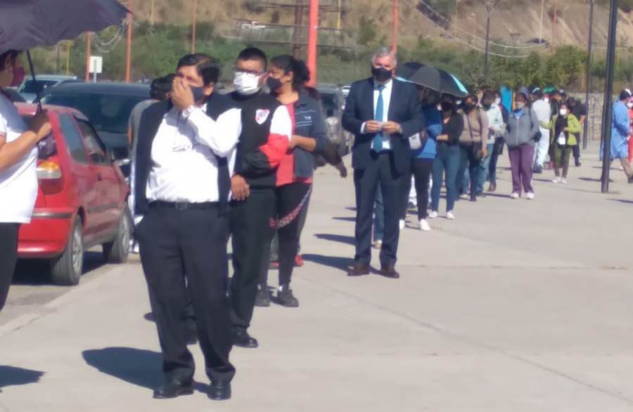 Morales aguardó su turno en la fila organizada por personal de salud y seguridad, atendiendo las medidas de bioseguridad establecidas para evitar la proliferación de contagios de COVID-19.