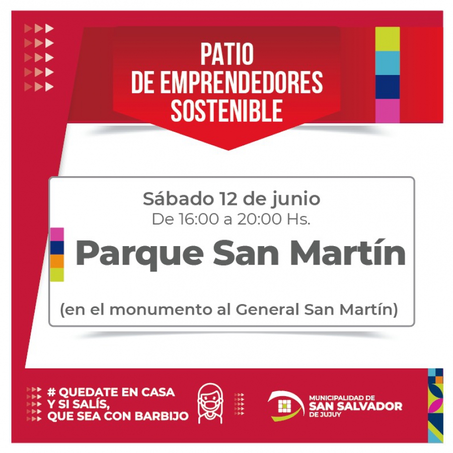 Desde la Municipalidad de San Salvador de Jujuy, a través de la secretaría de Planificación, Desarrollo y Modernización, invitan a todos los ciudadanos de nuestra Capital a participar de esta nueva edición especial del “Patio de Emprendedores Sostenibles”, el sábado 12 de junio de 16 a 20 hs, por primera vez expuesta en el corazón del Parque San Martín.
