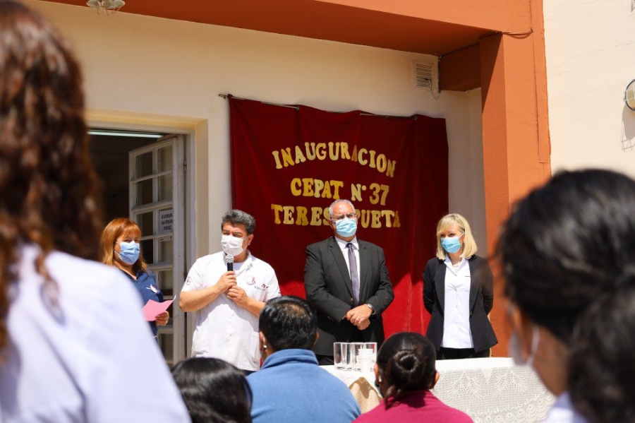 Durante la ceremonia, a propuesta de los trabajadores de la salud del CAPS Fátima y con el acompañamiento de su familia, el CEPAT lleva el nombre de Teresa Pueta, profesional en enfermería de larga trayectoria en la institución, fallecida durante la pandemia.