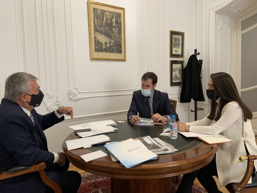La sede de la Embajada de la República Argentina ante el Reino de España, fue escenario de una reunión entre Gerardo Morales, Guillermo Acha Martínez - Arroyo, jefe del Departamento de Negocios de la compañía francesa Talgo; y Alba Tártalo, Analista Senior de Mercado de la citada empresa; en cuyo marco se abrió el camino para presentar en breve un pedido de cotización oficial de tres duplas con capacidad para transportar 240 pasajeros cada una para el tren turístico de la Quebrada.