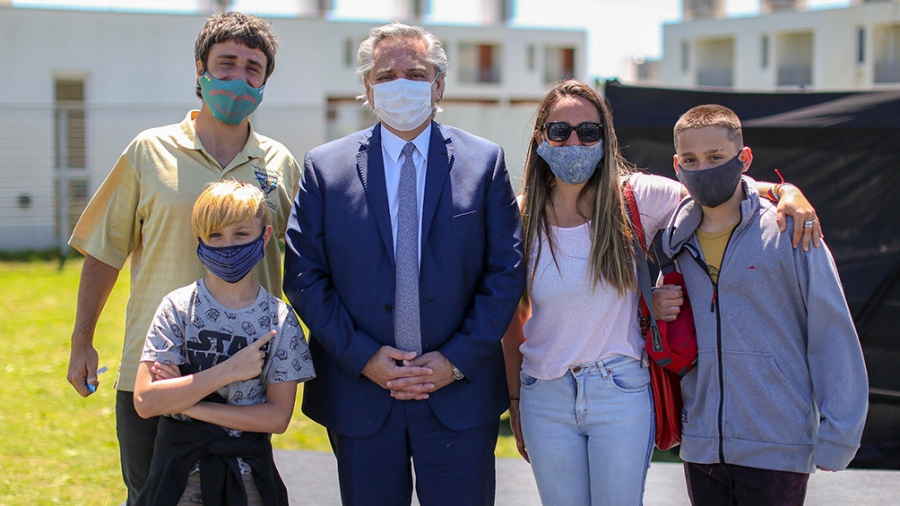 "Es difícil explicarle al mundo que hubo 11 mil viviendas como éstas que dejaron de hacerse y no se entregaron, muchas terminadas", apuntó Fernández en Ezeiza, acompañado también por los ministros del Interior, Eduardo "Wado" de Pedro, y de Desarrollo Territorial y Hábitat, María Eugenia Bielsa.