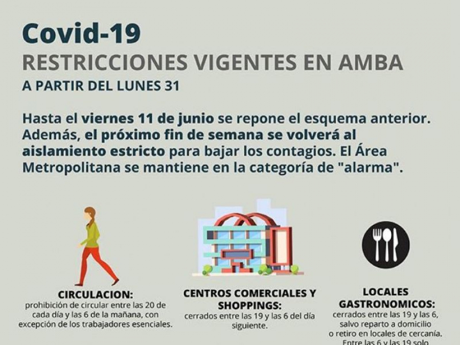 A partir del lunes 31, al menos en el Área Metropolitana Buenos Aires (AMBA) que se mantiene en la categoría de "alarma", las restricciones vigentes serán: