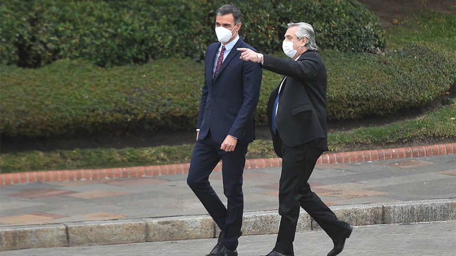 El presidente Alberto Fernández y el jefe de Gobierno español, Pedro Sánchez, ratificaron los vínculos de ambas naciones y llamaron a hacerlos "aún más sólidos" a uno y otro lado del Atlántico para lograr mayores inversiones, una distribución más equitativa de las vacunas contra el coronavirus y el apoyo necesario para que Argentina pueda obtener una reprogramación de los vencimientos de deuda con organismos multilaterales de crédito.