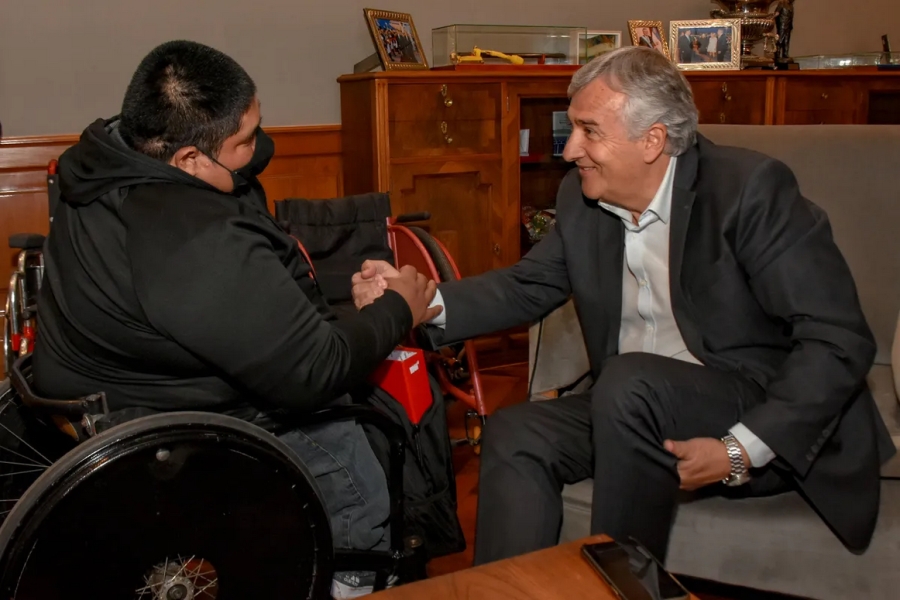 El mandatario provincial recibió en su despacho a Pablo Arcibia, un joven con discapacidad motriz y movilidad reducida que fabrica sillas de ruedas en Jujuy, quien requiere aporte estatal para ampliar la línea de producción y mejorar las condiciones de trabajo en el taller donde las diseña y ensambla.
