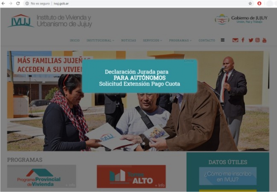 El Instituto de Vivienda y Urbanismo de Jujuy (IVUJ) dispuso que el vencimiento de la cuota se extenderá hasta un mes después de haber retomado su actividad para los adjudicatarios que por su ocupación (autónomos, cuentapropistas, etc.) no perciban ingresos durante el aislamiento social, preventivo y obligatorio.
