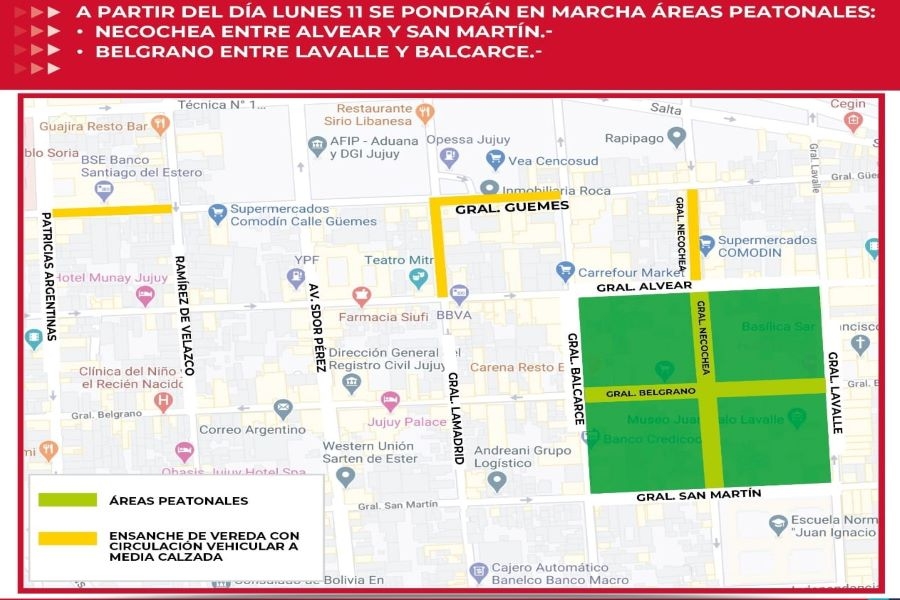 Siguiendo con los cambios en la ciudad, el secretario de Servicios Públicos, Guillermo Marenco, expresó “es una tarea que se viene desarrollando con el equipo interdisciplinario de la Municipalidad, y en esta primera etapa contempla la peatonalización de las calles Belgrano (desde Lavalle hasta Balcarce) y Necochea (desde Alvear a San Martín), generando un microcentro con gran accesibilidad a la vida comercial y brindando además el marco de seguridad sanitaria”.