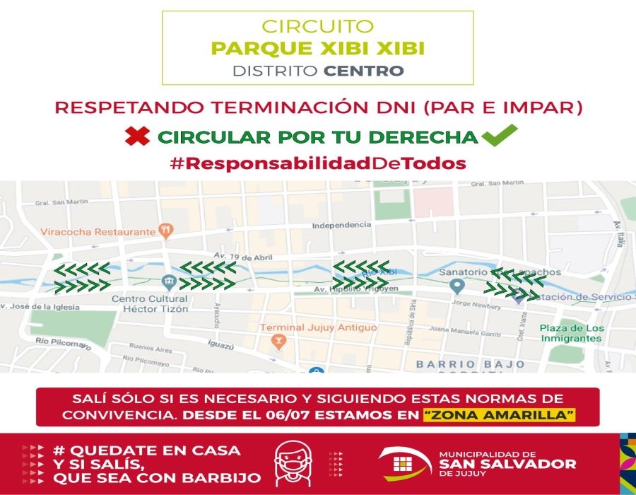 En el marco de una nueva reunión del COE Municipal, se definieron 5 circuitos en el ámbito de la ciudad, cada uno con ciertos sentidos de circulación con el fin de evitar aglutinamientos, respetando la distancia física y el uso obligatorio de barbijo. Se recuerda que debe respetarse las terminaciones del DNI.