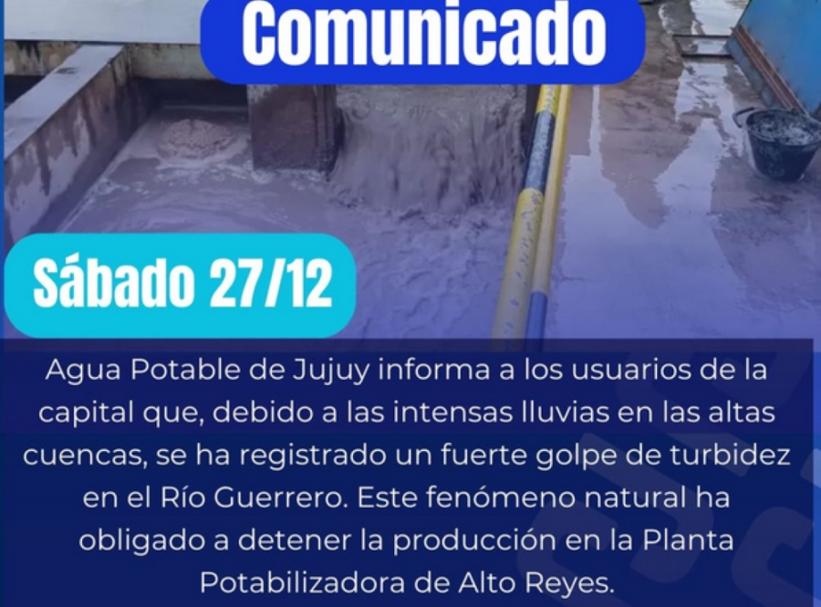 Debido al incremento de sedimentos en la toma del Río Guerrero, la empresa de agua local ha puesto en marcha un protocolo de emergencia que afecta el normal suministro en importantes sectores de la capital provincial. Los barrios actualmente afectados por la interrupción o baja presión del servicio son Los Perales, Chijra, Bajo La Viña y Alto La Viña.