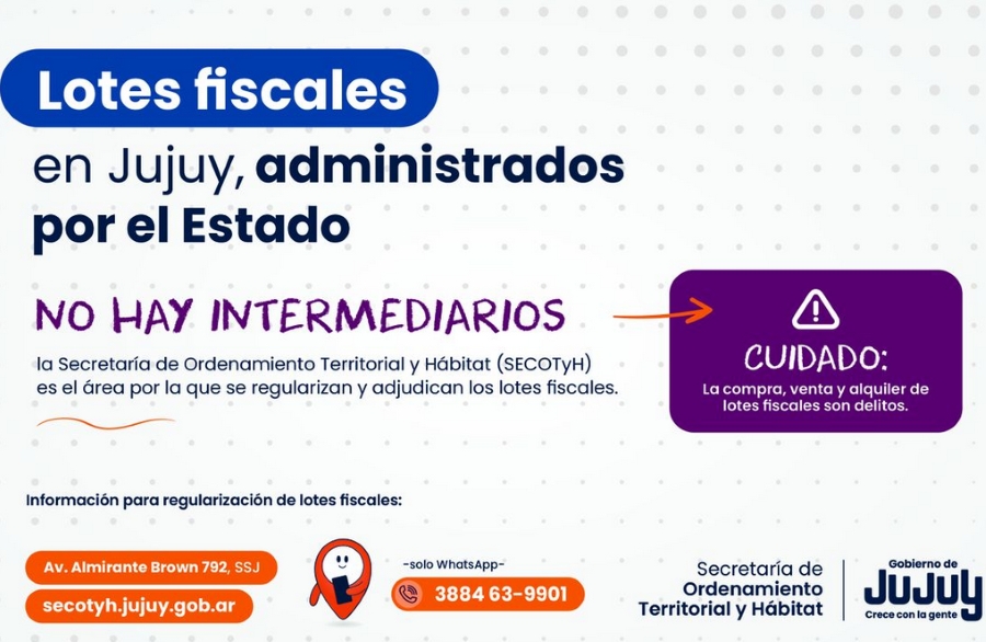 Para finalizar, el secretario de Ordenamiento Territorial y Hábitat, convocó a las familias que tengan consultas sobre la situación de sus lotes a “acercarse al Organismo para recibir asesoramiento y avanzar en su regularización, como también a informarse y avanzar en trámites tanto en nuestra página web, secotyh.jujuy.gob.ar, y mediante nuestro ChatBot, vía mensaje de texto de Whatsapp, al número 388-4639901 ”.