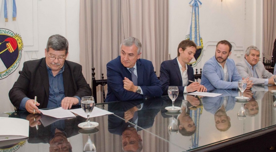 El gobernador, Gerardo Morales acompañó la firma del precontrato desarrollada en el Salón Blanco de Casa de Gobierno del que fueron partes el presidente de JEMSE, Carlos Oehler y representantes de Gheragro.