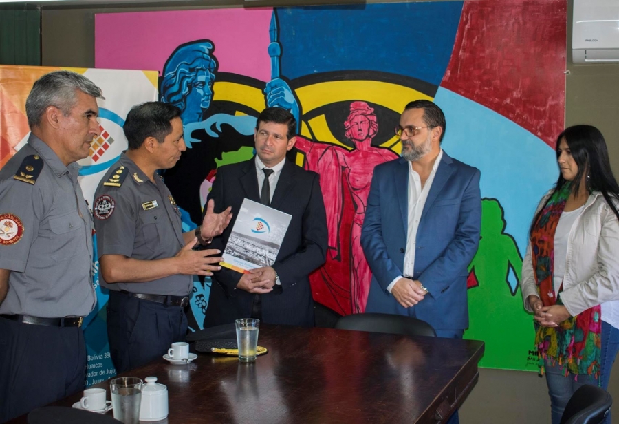 Por este motivo, se llegó hasta la institución parlamentaria el Comisario Mayor y Jefe del Cuartel de Bomberos, Carlos Mamaní y el Comisario Inspector Sergio Gutiérrez, quienes fueron recibidos por el presidente de la institución, Lisandro Aguiar, el concejal Santiago Jubert, impulsor de la iniciativa, más Patricia Moya, María Galán, Estela Flores y el Secretario Parlamentario, Jorge Beller.