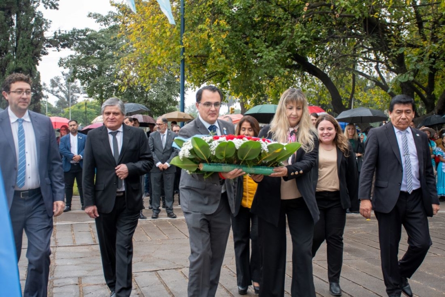La ceremonia, realizada el pasado sábado en la plaza Francisco de Argañaraz y posterior desfile en Ciudad Cultural, contó con la presencia del gobernador de la provincia, Carlos Sadir; el intendente de la ciudad, Raúl “Chulí” Jorge; el presidente del Concejo Deliberante, Lisandro Aguiar, quien estuvo acompañado por los ediles: Leandro Giubergia, Néstor Barrios, Mario Lobo, Melisa Silva, Liliana Giménez, María Galán y Blanca Ontiveros; además de autoridades provinciales y municipales, legisladores nacionales y provinciales, representantes de instituciones educativas, de agrupaciones tradicionalistas y vecinos.