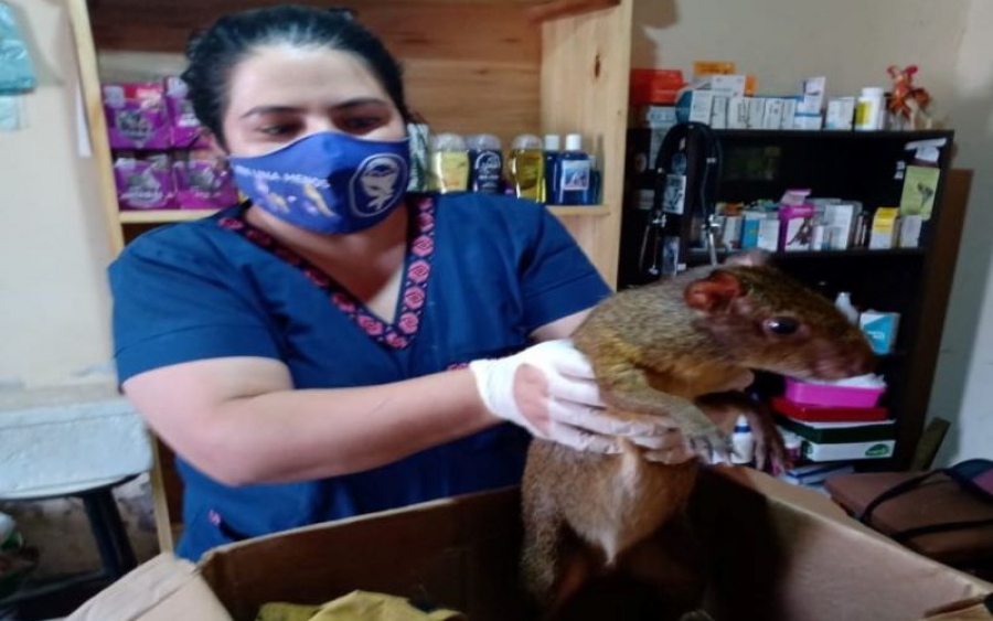 El agutí (Dasyprocta leporina), rescatado el 6 de noviembre en la zona de los incendios forestales, fue asistida por la médica veterinaria Anahí Vera, de Yuto. El ejemplar presentaba quemaduras leves en las patas, se recuperó y tabién fue liberado.
