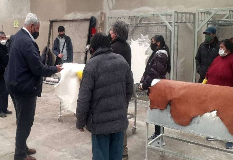 En otro orden, Haquim visitó el salón de la asociación "Las Vicuñitas", donde conversó con referentes de curtiembres.