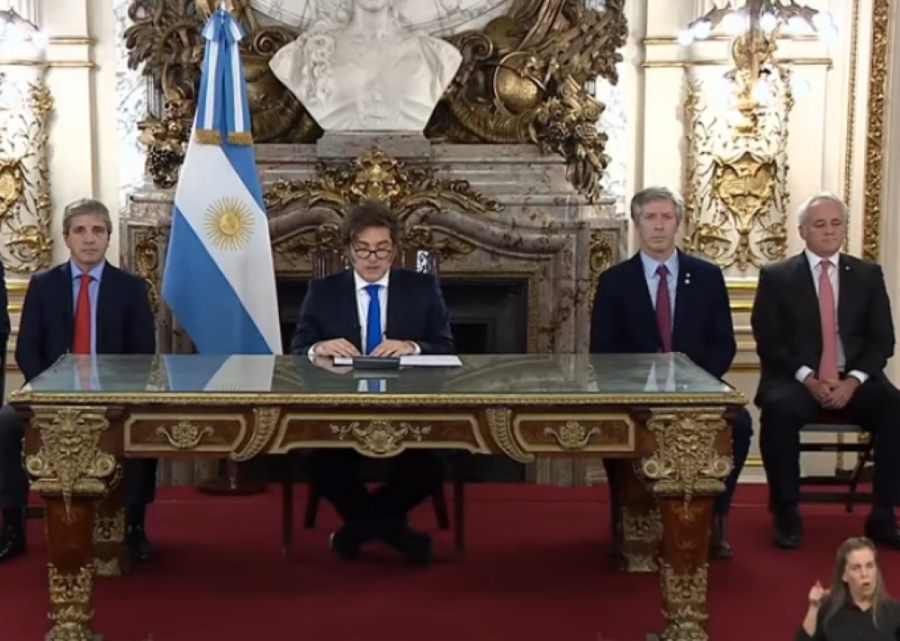 Milei sentó a su ministro de Economía, Luis "Toto" Caputo, a su derecha, y dio un mensaje confuso y defensivo, que parece insinuar que el Gobierno prevé problemas económicos y políticos.